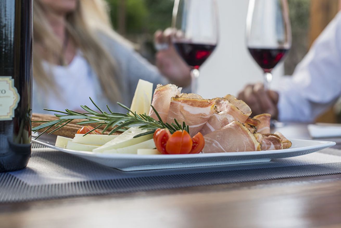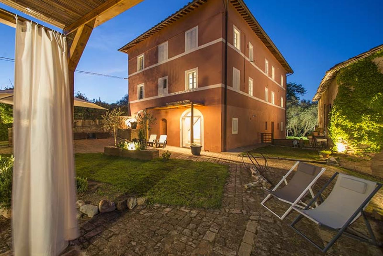 Durante la stagione calda è anche possibile mangiare all’aperto, nell’ampio spazio attrezzato con vista verso Siena e le colline della campagna Toscana.